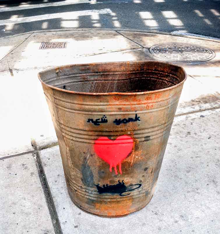 So….I’ve been seeing so many great walls since I’ve started this 42 foot long art installation project. You’ve got to go see STREET ARTISTS WALLS @ CONEY ISLAND this summer, so terrific!: Huffington Post Article. I’m pretty convinced, El Seed, did the “new york” on the garbage can I found at Little 5Pointz. I wrote him but didn’t hear back….I love it though, THANK YOU El Seed, if you did do it! It’s in my apartment and makes me very happy everyday.