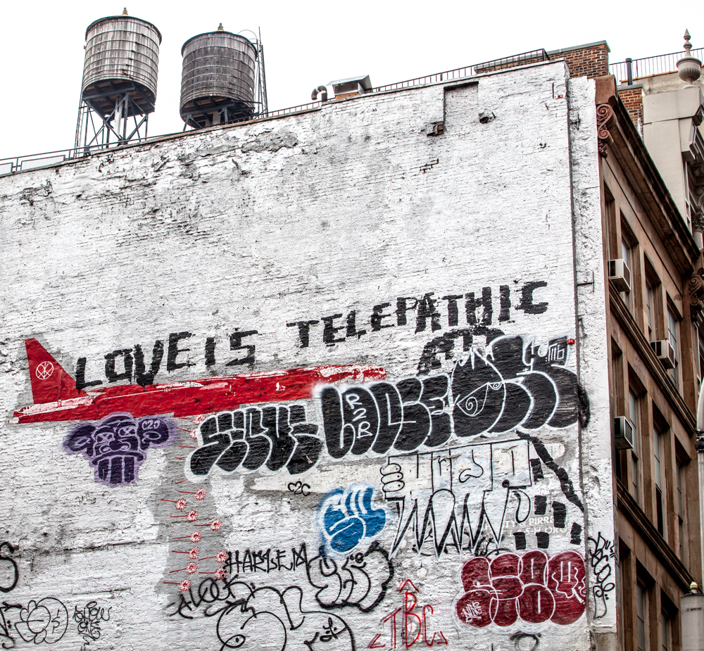 A photo I took of his “LOVE IS TELEPATHIC” in SoHo wayyyy up in the air! Too fabulous!